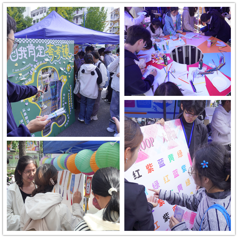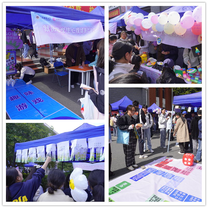 本次活动创新采用校、院、班三级联动机制,心理素质发展中心联合各学院发展辅导站精心策划了45项特色互动活动。通过心理知识主题展板、宣传册发放和趣味体验相结合的方式,让心理健康知识“活”起来。师生在趣味互动中解锁心理密码,在温情陪伴中汲取成长力量。
