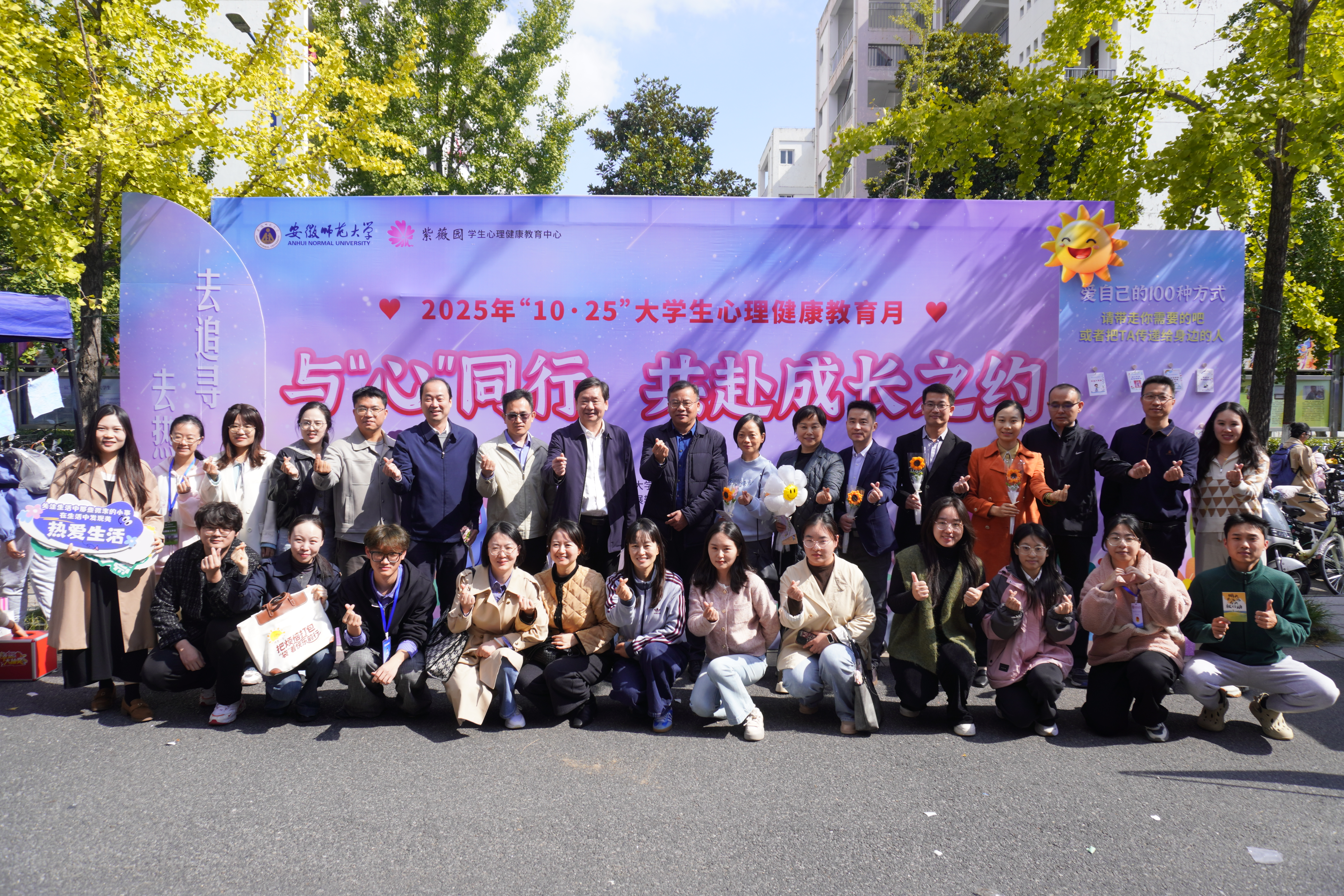 10月22日,我校在花津、赭山两校区同步举办了以“与‘心’同行,共赴成长之约”为主题的2025年“10·25”大学生心理护航主题活动。校党委副书记胡靖、芜湖市第四人民医院领导专家、学生处、校团委负责人,各学院副书记和发展辅导站站长及广大同学现场参与活动。