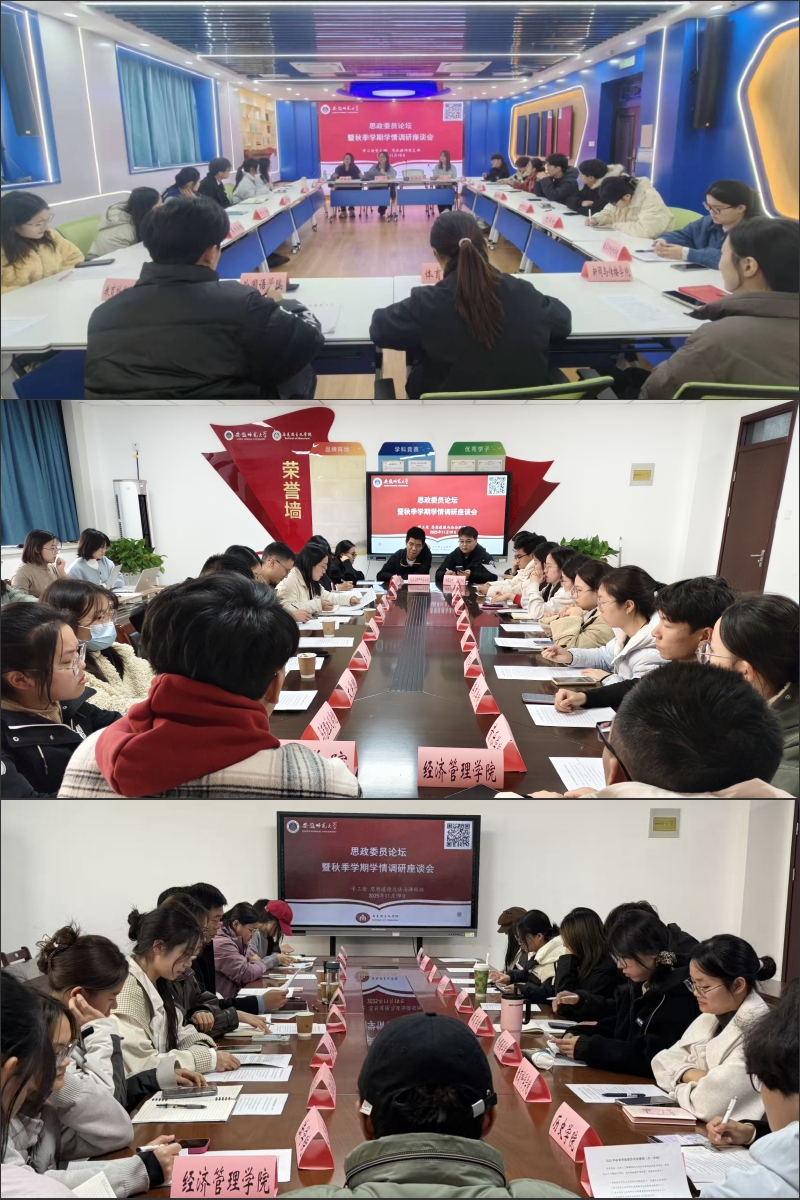 为推进大学生护航行动计划,精准了解不同年级学生思想动态与成长诉求,11月19日下午,学工部联合马克思主义学院在文典楼情景模拟实验室、G211室、G215室开展本科生秋季学期护航学情调研座谈会。马克思主义学院思政课教师代表、辅导员代表及各学院思政委员代表参加了本次座谈会。