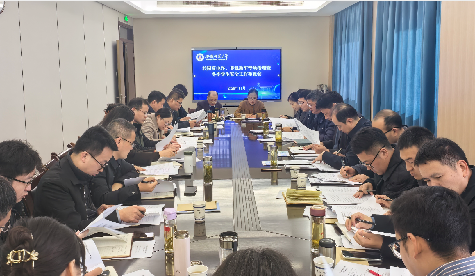 11月28日上午,学校召开校园反电诈、非机动车专项治理暨冬季学生安全工作布置会,校党委常委、副校长王刚出席会议,学校相关部门负责人、各学院分管学生工作负责人参加会议,学工部部长乔静主持会议。