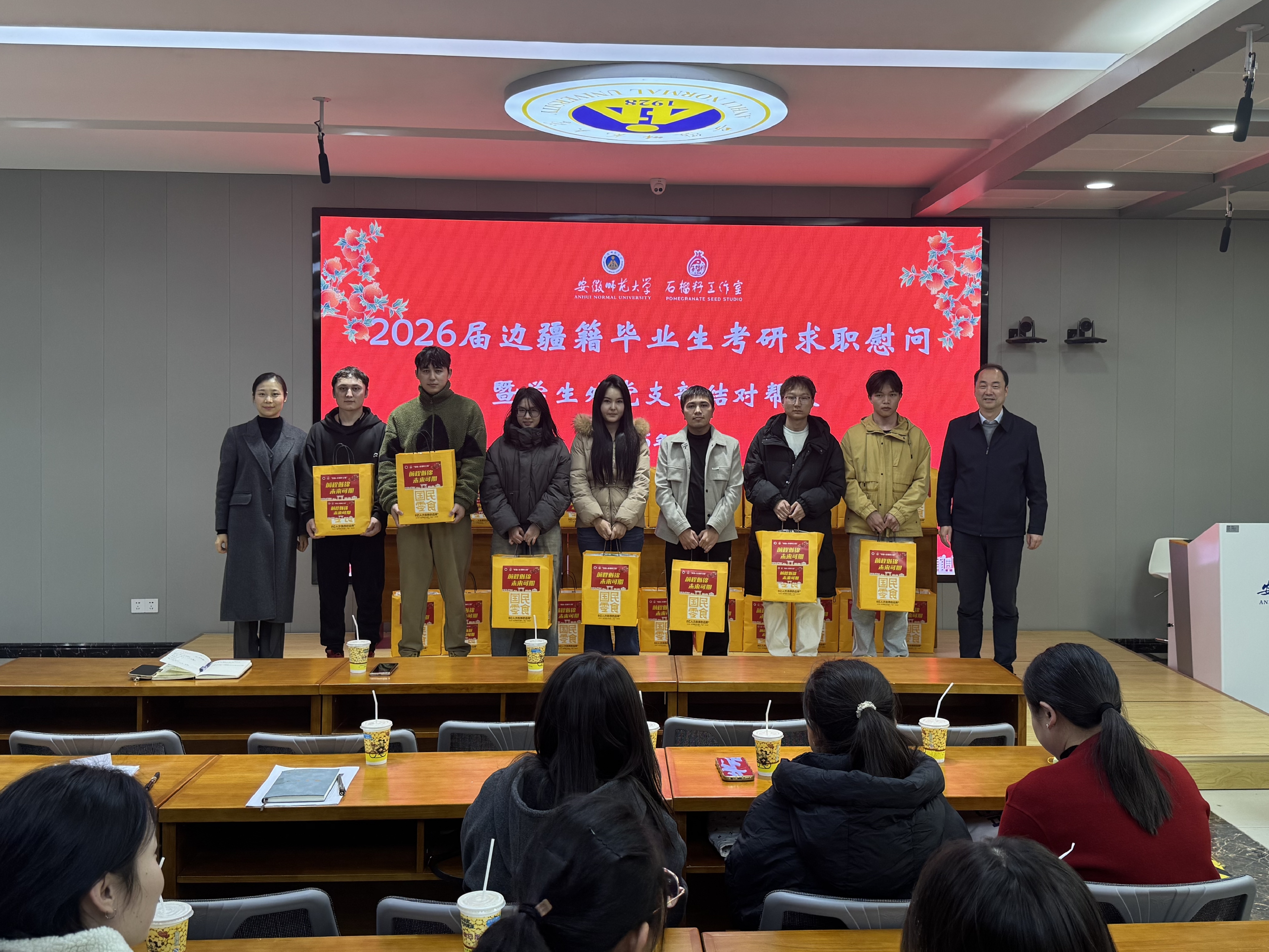 为切实关怀边疆籍毕业生成长发展,11月28日下午,学生处开展2026届边疆籍毕业生考研求职慰问活动,为边疆籍毕业生送去学校的温暖与关怀。学生处处长乔静、学生处副处长汪婕以及学生处各中心老师、2026届边疆籍毕业生代表参加了此次活动,活动由阿卜来提·阿卜力克木主持。