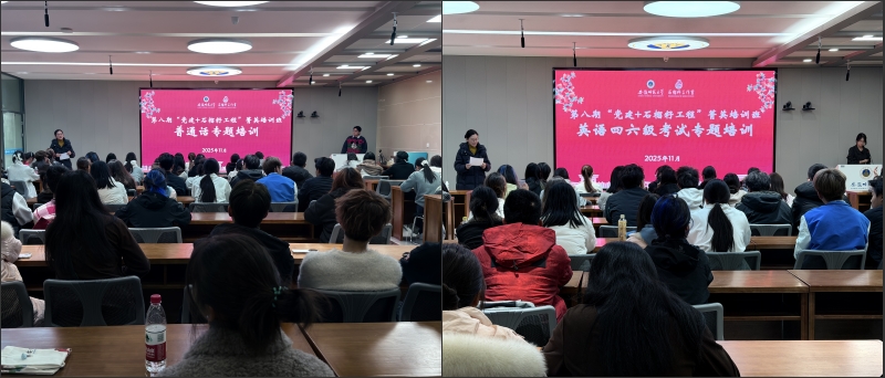 培训聚焦普通话水平测试、英语四六级考试等学生现实需求,邀请经验丰富的优秀学子分享备考经验,为同学们送上干货满满的备考指南。新闻与传播学院的王巍伟同学以“凝心聚‘普’,通关指南”为主题,结合自身普通话一级乙等的优异成绩,系统拆解了普通话水平测试的题型分值分布。针对少数民族同学和边远地区学子常见的声调不到位、平翘舌混淆、前后鼻音不分等发音痛点,他发挥播音主持专业优势,以生动幽默的语言分享了“黄金语速控制法”“万能接句技巧”“每日10分钟跟读法”等实用策略,还带来绕口令矫正、新闻联播模仿、临场应急拆读、断档救场万能句型等特色训练方法,并推荐了优质备考工具与素材资源,鼓励同学们坚持21天打卡,养成标准发音习惯。外国语学院梅安祺同学围绕英语四六级考试展开系统讲解,覆盖“考试概况、备考策略、冲刺技巧”三大模块。她从考试整体结构出发,梳理了听力、阅读、写作与翻译四大模块的备考要点,强调词汇积累是基础,推荐了多种高效记忆工具,并结合历年真题深入剖析各题型解题技巧与时间分配策略。针对六级听力难度较大、同义替换增多的特点,她分享了“预读定方向、听时抓关键”的实战方法;在写作与翻译部分,提供了丰富的高级词汇替换表和句式模板,强调“不留空、第一句别出错、卷面整洁”等原则,助力同学们在短期内提升应试能力。