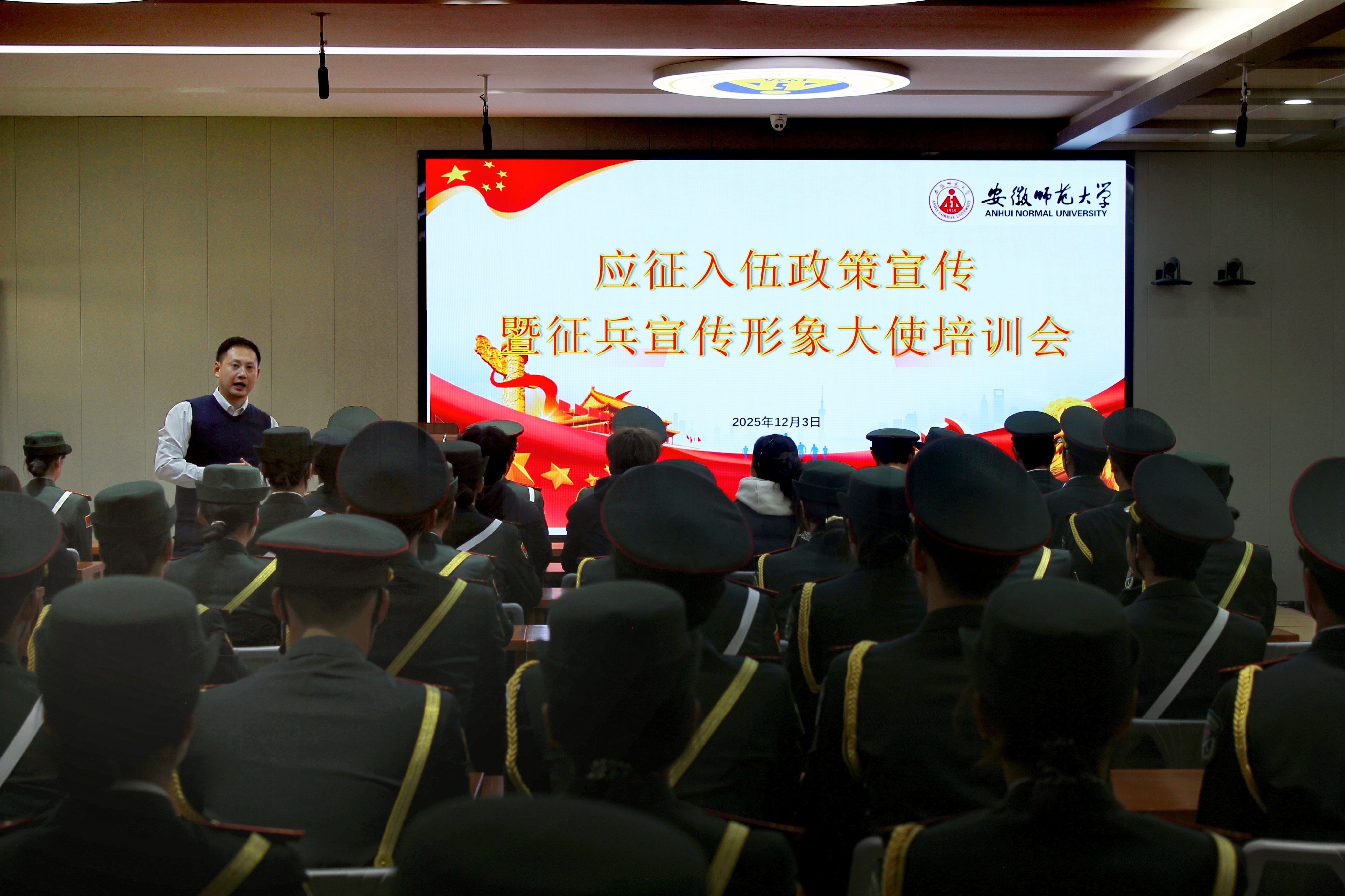 12月3日,安徽师范大学国旗护卫队2025年换届大会暨征兵宣传形象大使培训会在花津校区一站式学生社区·学生之家举行。校人武部曹活老师、军事爱好者协会骨干及国旗护卫队新老队员齐聚现场。