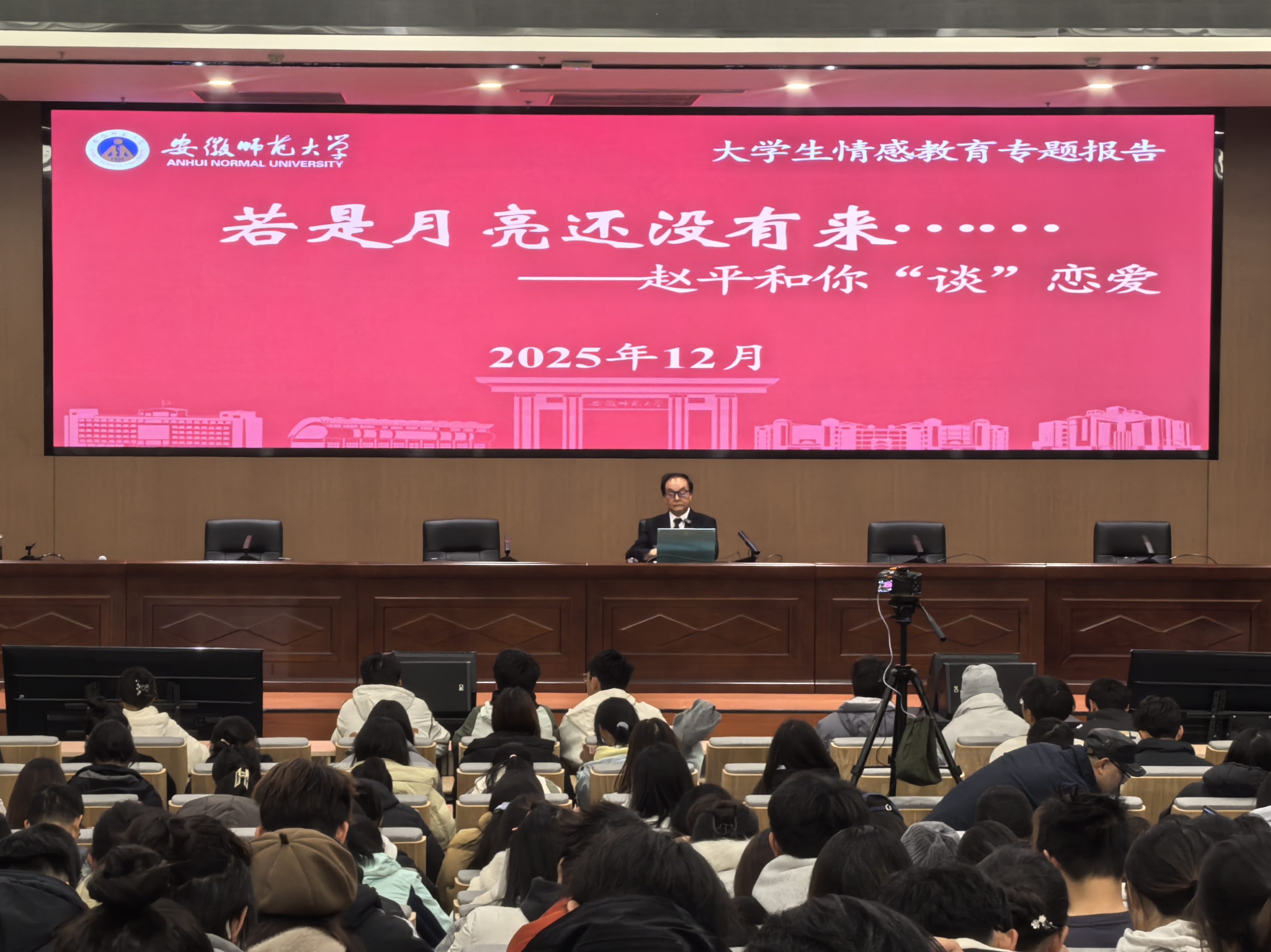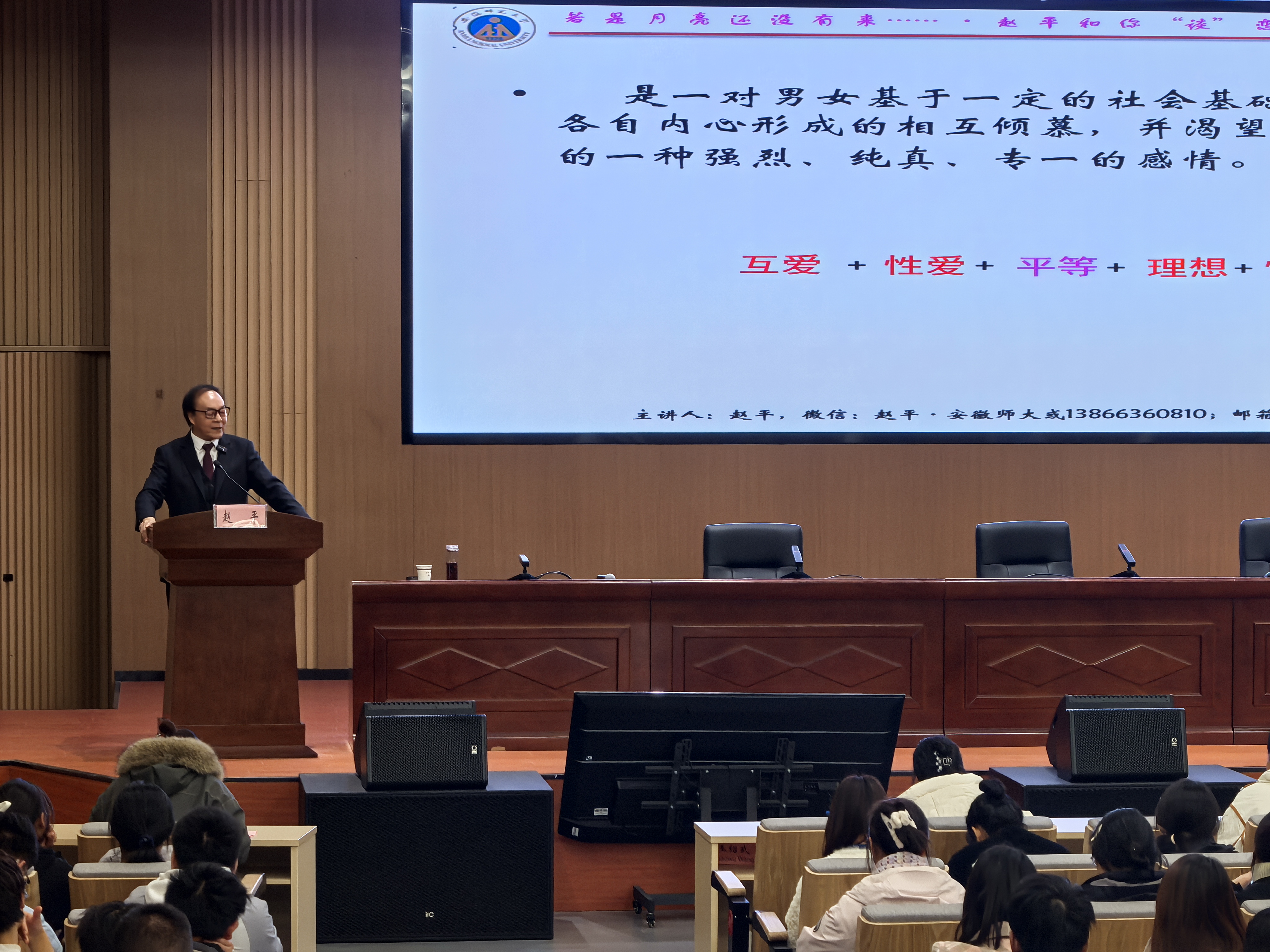 为切实强化思政育人实效,破解大学生青春情感困惑,助力学子树立健康向上的生命观、情感观与价值观,近日,学工部特邀马克思主义学院赵平教授,在花津校区文典楼三楼报告厅以“若是月亮还没有来……”为题,带来一场生动深刻的情感教育专题讲座。2025级本科生辅导员及花津校区本科生代表现场参与,共同探寻爱情与成长的真谛。