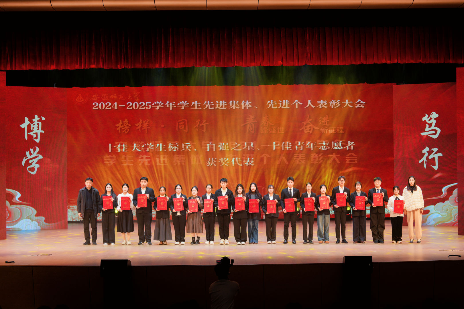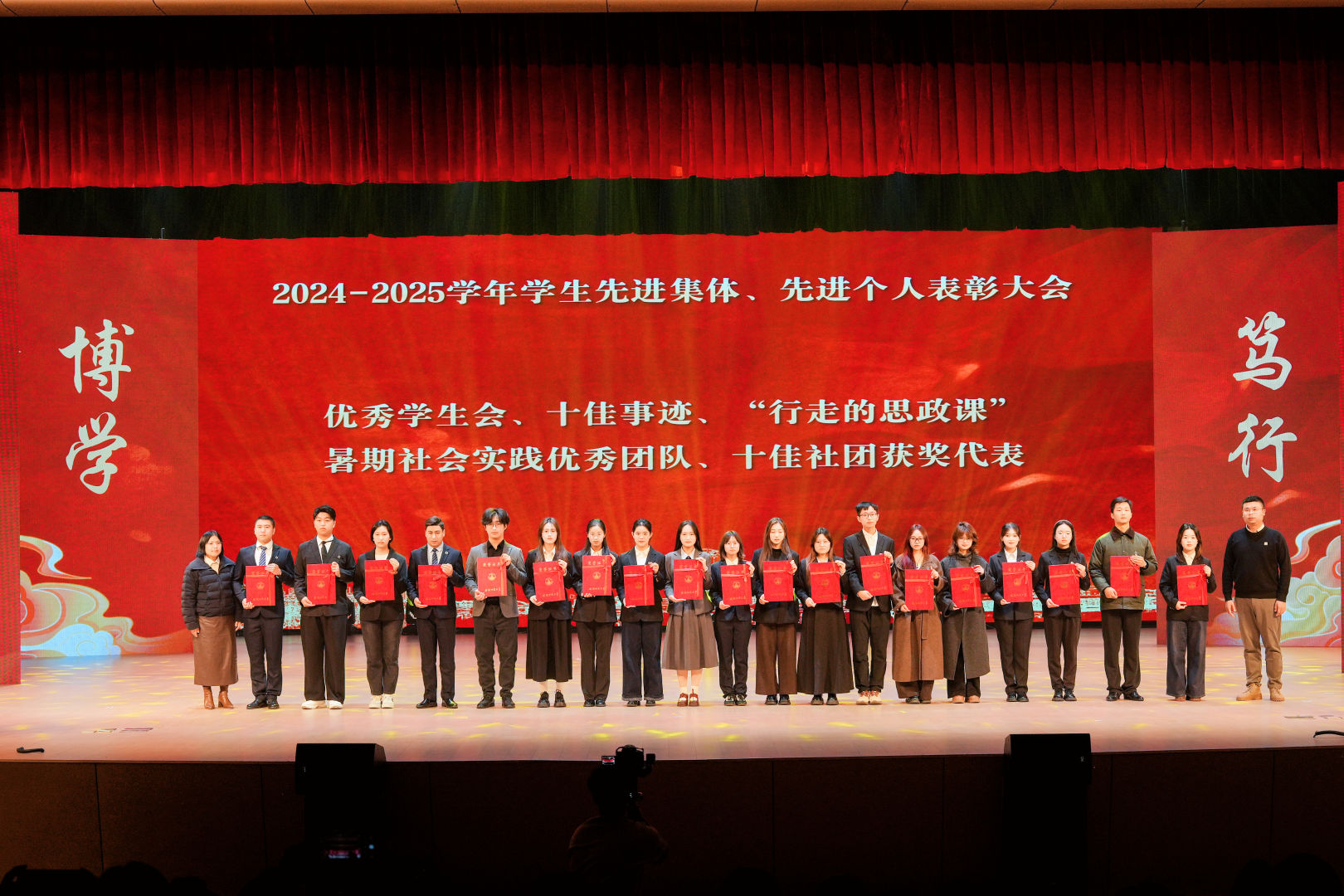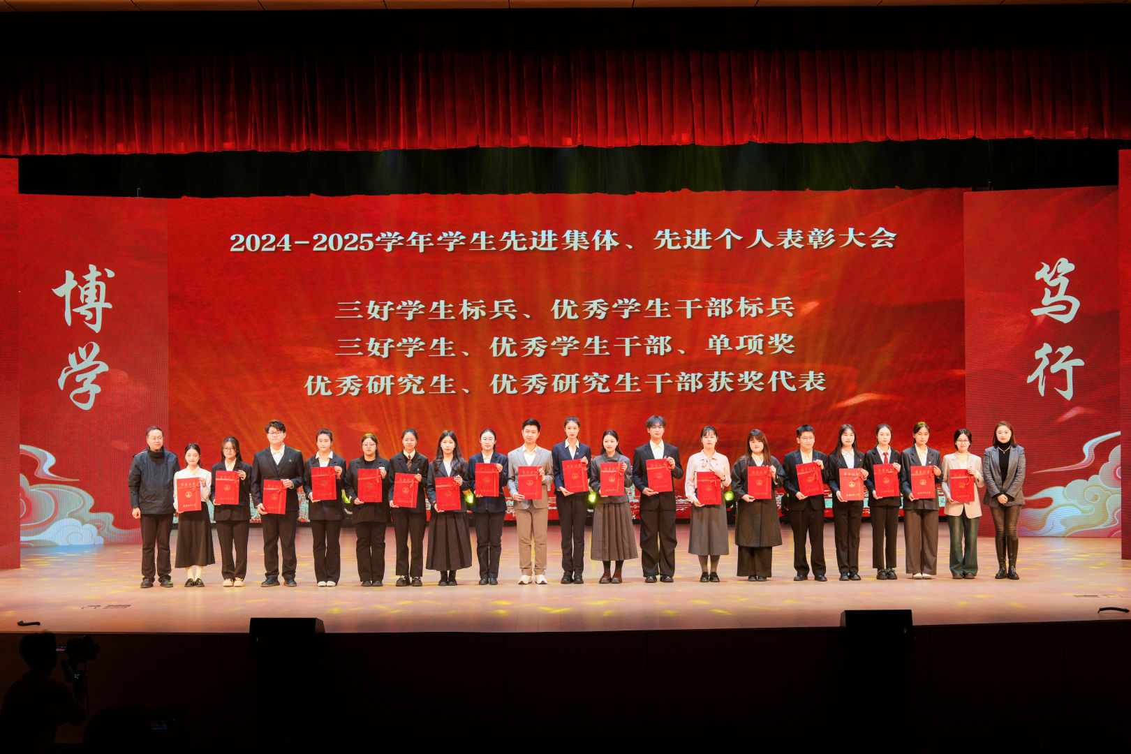 整场表彰大会将颁奖表彰、现场访谈和文艺节目穿插进行,依次对2024-2025学年获得三好学生标兵、优秀学生干部标兵、三好学生、优秀学生干部、单项奖、优秀研究生、优秀研究生干部、十佳大学生标兵、自强之星和十佳青年志愿者等综合类先进个人;AB类国家级奖项、本科生国家奖学金、励志奖学金、研究生国家奖学金等学习类先进个人;优秀学生会、十佳事迹、“行走的思政课”暑期社会实践优秀团队、十佳社团、十佳班集体、五四红旗团支部等先进集体进行表彰。大会通过颁奖词宣读,对受表彰的先进个人和集体给予了高度评价,生动呈现了他们携手同行、共同成长的青春历程。