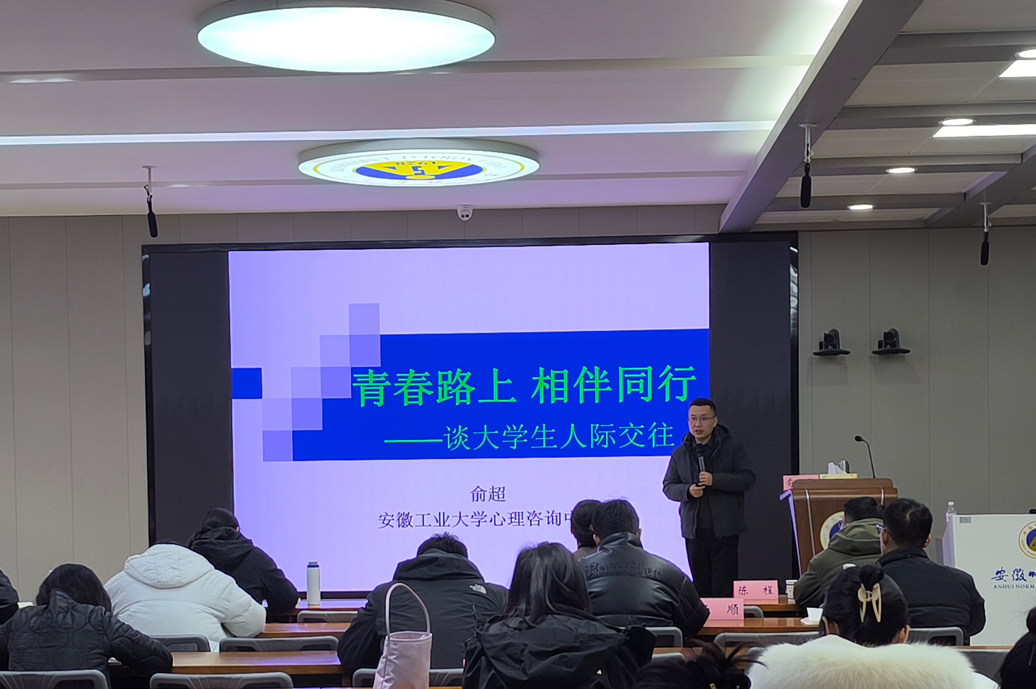 为深入贯彻“立德树人”根本任务,落实落细“心理护航”工作部署,扎实推进心理课程体系建设,着力提升课程教师教学能力,1月12-13日学生处在大学生活动中心107学生之家开展“心语面对面”第28-29期《大学生心理健康教育》课程教师专题培训。本次培训以“涵养生命能量,赋能心理课堂”为主题,特邀安徽省心理健康教育专家安徽工业大学管理科学与工程学院党委书记王军教授与学生处副处长俞超老师主讲,教研室全体教师参与培训。