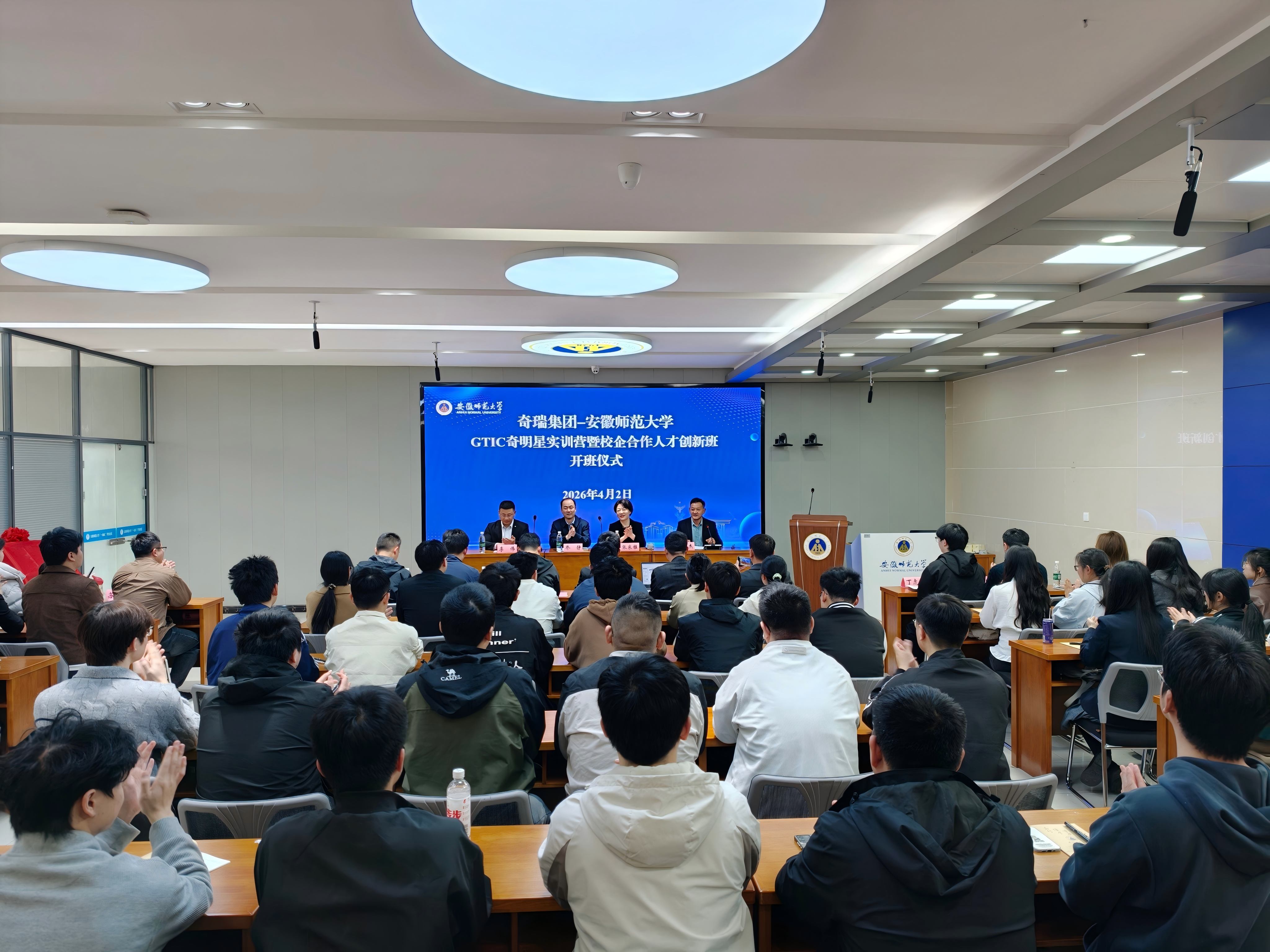 为进一步推动学校与奇瑞集团深度合作,深化产教融合、校企协同育人,4月2日下午,奇瑞集团—安徽师范大学GTIC(奇瑞汽车全球技术创新中心)奇明星实训营暨校企合作人才创新班在我校花津校区大学生活动中心学生之家顺利开班。奇瑞控股集团有限公司人力资源总监张东雅、校园业务部总监李伟,学生工作处处长乔静,奇瑞集团相关部门负责人,学校相关学院分管就业工作负责人及全体参训学员参加开班式。