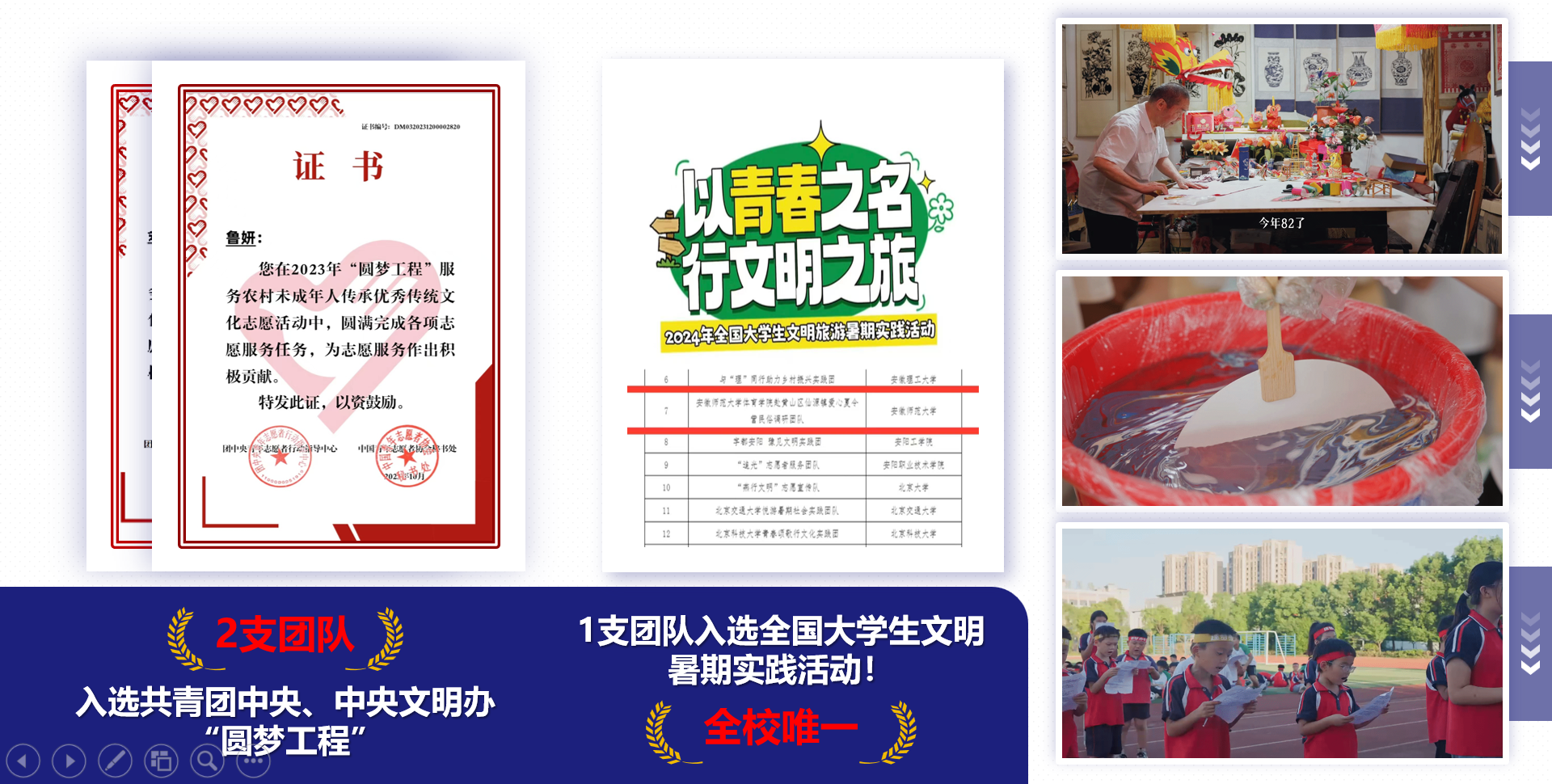 班级教资通过率实现100%满贯纪录,推免率达20%,位列学院第一。累计获各级奖学金93人次,充分彰显了同学们文武兼修、全面发展的实力底色。以竞技为翼,亮出青春名片。班级累计在国家级、省市级赛事中斩获449项荣誉,其中国家级奖项149项、省市级奖项300余项;健美操、体育舞蹈、啦啦操三大专项持续刷新学校乃至安徽省的历史最好成绩,培养出国家级运动健将1人、国家一级运动员4人、二级运动员4人。在高水平赛事舞台上,实现了多点突破:健美操专项班在全国锦标赛多次跻身全国前二,并在省赛强势收割七项冠军;体育舞蹈专项班在第18届全国大学生体育舞蹈锦标赛上,创造了安徽高校历史最佳战绩;啦啦操专项班作为安徽高校唯一代表,站上中华人民共和国第一届学生青年运动会赛场,并再次刷新我省最好成绩。以实践为桥,笃行奉献担当。从校运会开幕式惊艳全场的15部作品,到全校唯一的“中国青年报社”支教团队获评全国优秀;从主流媒体百万次曝光,到特殊教育学校三年的公益坚守,让舞蹈之美走出排练厅,服务社会、温暖人心。用两万余小时的志愿服务时长,证明了体育不仅是力量的角逐,更是文化的传播、精神的塑造和爱心的传递。