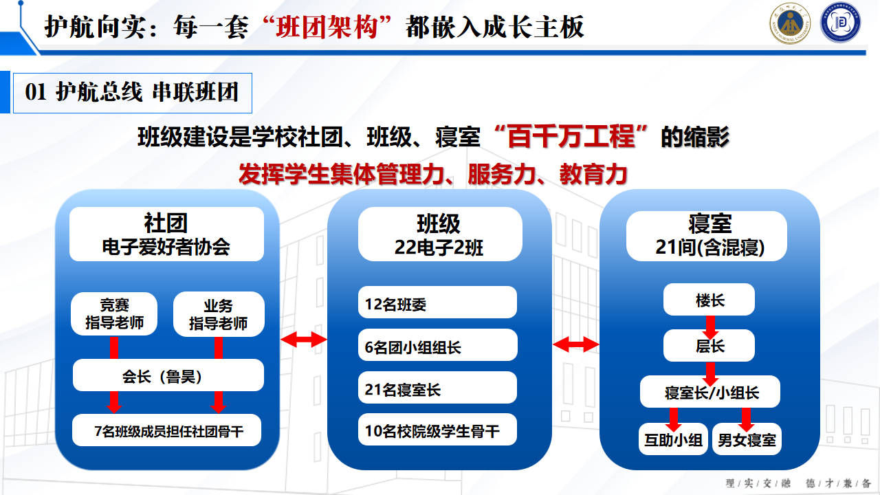 班级管理模式响应了学校社团、班级、寝室“百千万工程”,发挥学生集体管理力、服务力、教育力。