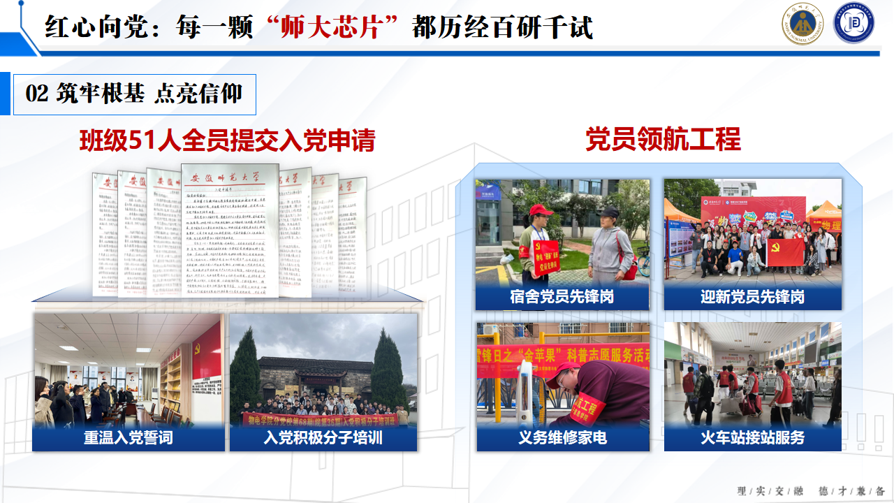 重视党员培养教育管理,班级51人全员递交入党申请,实行党员领航工程,引导学生在学习、生活等领域做好示范引领。
