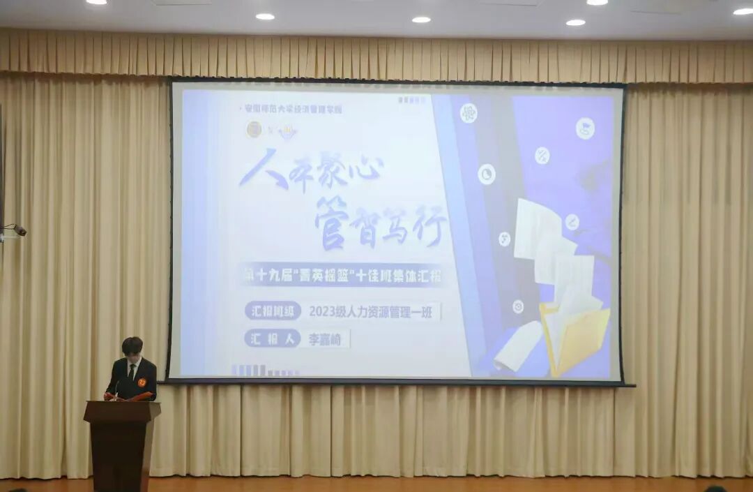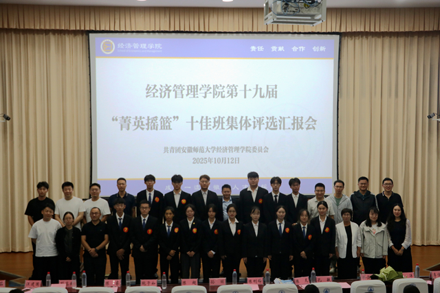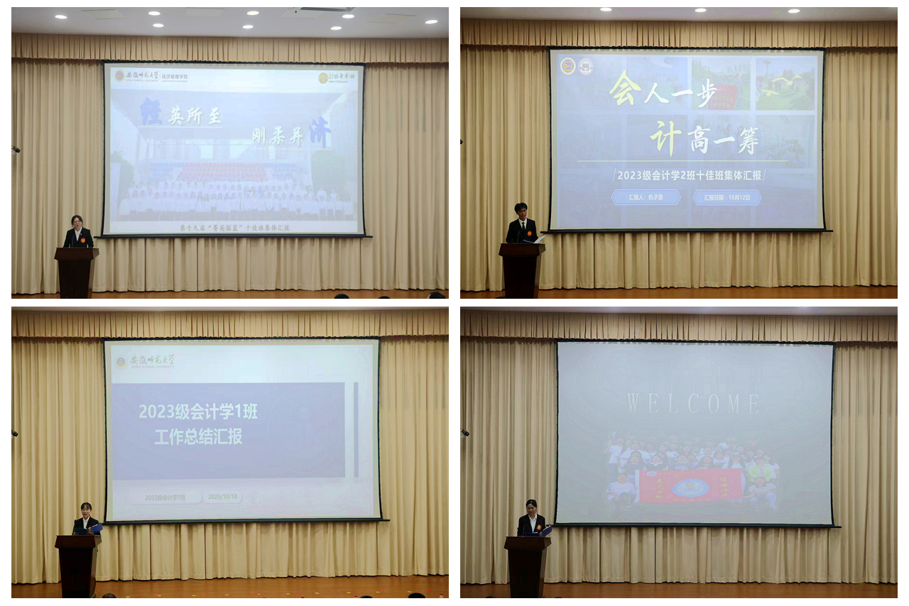 为进一步发挥班集体在“立德树人”中的重要作用,推动优良院风、班风、学风建设,10月12日晚19:30,经济管理学院在赭山校区科技南楼报告厅举行第十九届“菁英摇篮”十佳班集体评选活动。院党委副书记陈刚锋、财会系主任孙丽、经济系主任陈龙、数字经济系主任孔敏、金融工程系主任陈超、人力资源管理系主任鲍子如、院团委书记吕洋、全体专兼职辅导员和全体2025级本科新生参加。评选汇报会由第22届团委、学生会部长韦凯翔主持。