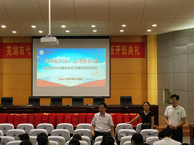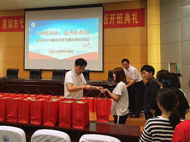 本网讯(教科院 龚伟)八月的芜湖,骄阳似火。为更好助力学生迎考,给他们加油打气。8月15日上午,教育科学学院在田楼报告厅举行了2018届本科生考研暑期慰问会。学院党委书记刘晓宇、院长桑青松参加了此次会议。大会由院党委副书记张如华主持。