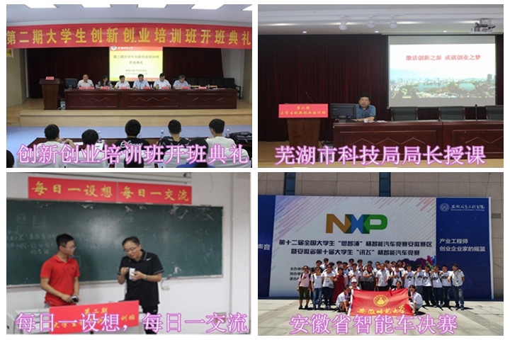 学院以培养专业知识“精”、创新思维“活”、实践能力“强”的高素质创新型大学生为目标,以“培养创新意识,激发创造潜力,实践创新过程”为培养步骤,以创造学理论、创新方法、创新实践和创业指导为培训内容,招收9个学院的79名学员,开办了第二期大学生创新创业培训班。培训期间,芜湖市科技局局长杨少华、安徽工业大学工程创新学院院长(中国创造学会副理事长)冷护基教授多名知名专家现场讲授《领会创新精神,强化思想引领》、《工程类项目研究及拓展思维的训练方法》等课程,夯实理论基础,突破思维枷锁;组织学员参观高新技术企业、走进芜湖市科技馆,感受科技氛围,启迪创新思维;所有学员在“每日一设想、每日一交流、每人一创意,每期一专利” 启迪创造智慧,交流创新设想,培训期间学生自主提交创新设想395个,撰写专利文书79件。另外,学科竞赛集训团队也在积极备战全国电子设计大赛、全国智能车竞赛和中国“机器人”大赛、全国物理教学展示暨自制教具大赛、全国物理教学创新大赛等专业竞赛。他们在学习中创新,在实践中锻炼,努力为学校和学院争得荣誉。在刚刚结束的第十二届全国大学生“恩智浦”杯智能汽车竞赛安徽赛区比赛中,我院9支参赛队伍中,5支荣获安徽省二等奖,4支队伍荣获安徽省一等奖的佳绩。