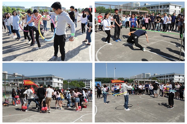 趣味运动会有三个比赛项目,第一个项目为呼啦圈过山车,第二个项目为 弯腰过线,第三个项目为 踩气球大作战。比赛采用积分制。与传统运动会不同,本次趣味运动会将竞技与娱乐相结合,着重于同学们的参加和合作。三项比赛不仅是团队合作精神的良好体现,而且兼顾了趣味性和互动性。比赛现场掌声、笑声、观众们的加油声和获胜者的欢呼声此起彼伏,场上场下互相交流、互相调侃,整个比赛过程始终充满了欢乐祥和的气氛。同学们将青春的光芒发挥到极致,充分感受到友谊第一比赛第二的宗旨。经过三关的激烈比拼,最终前三名名次揭晓,分别是文艺部、体育部和办公室。奖品为大袋零食和呼啦圈。