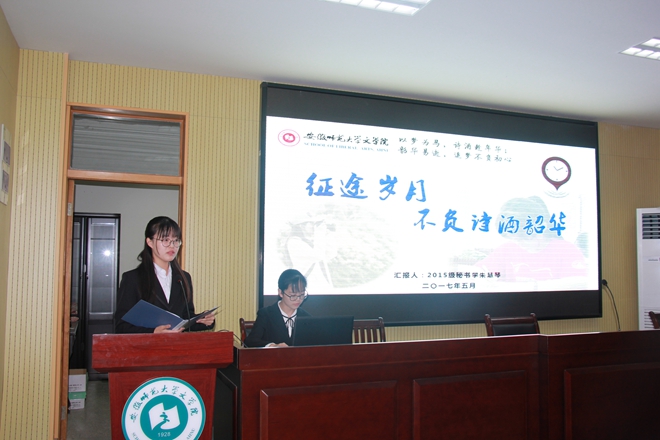 全体秘书学专业学生经过第一轮“Office应用技能大赛”,第二轮“秘书职业技能大赛”的激烈比拼,16位优秀选手成功晋级,角逐 “秘书之星”荣誉称号。参评选手按照顺序图文展演进行事迹汇报,展现自我风采,每项汇报限时5分钟。2016级秘书学专业宁文静立足专业,勤积跬步,行至千里;实践拓展,亲身躬行,知行合一;面向未来,踏实肯干,砥砺前行。2015级秘书学专业马小苏脚踏实地践行真善美,思想坚定,勤学善思,品格高尚,不忘初心,做全面发展的秘书人。2014级秘书学专业宁嘉惠同学勤学慎思,做扎实精深的专业精锐;坚定信仰,做谦敏笃行的团学骨干;甘于奉献,做知行合一的志愿先锋;追求卓越,做才学双馨的时代青年。2015级秘书学专业方铭同学以秘书名义写青春故事,以梦为马,立秘书品质;厚植根基,提秘书素养;踏实锻炼,树秘书形象。2015级秘书学专业朱慧琴同学有信仰、求进取、有自信、知感恩,身体力行在实践中创造和实现自己的价值。“人只要不忘初心,朝着未来前进,付出很多,总会有回报。愿这个城市的每一个奋斗者都不要泄气,很多人在你不知道的地方和你一样的努力,要坚信,所有的梦想都会开花。”参赛选手谢啊英在汇报最后如是说道。评委老师根据选手现场表现,结合PPT展示和个人事迹汇编材料进行评审。宁嘉惠、马小苏等5位同学以优异成绩荣获“秘书之星”称号,董云、丁玲玲等11位同学获“秘书之星”提名奖。
